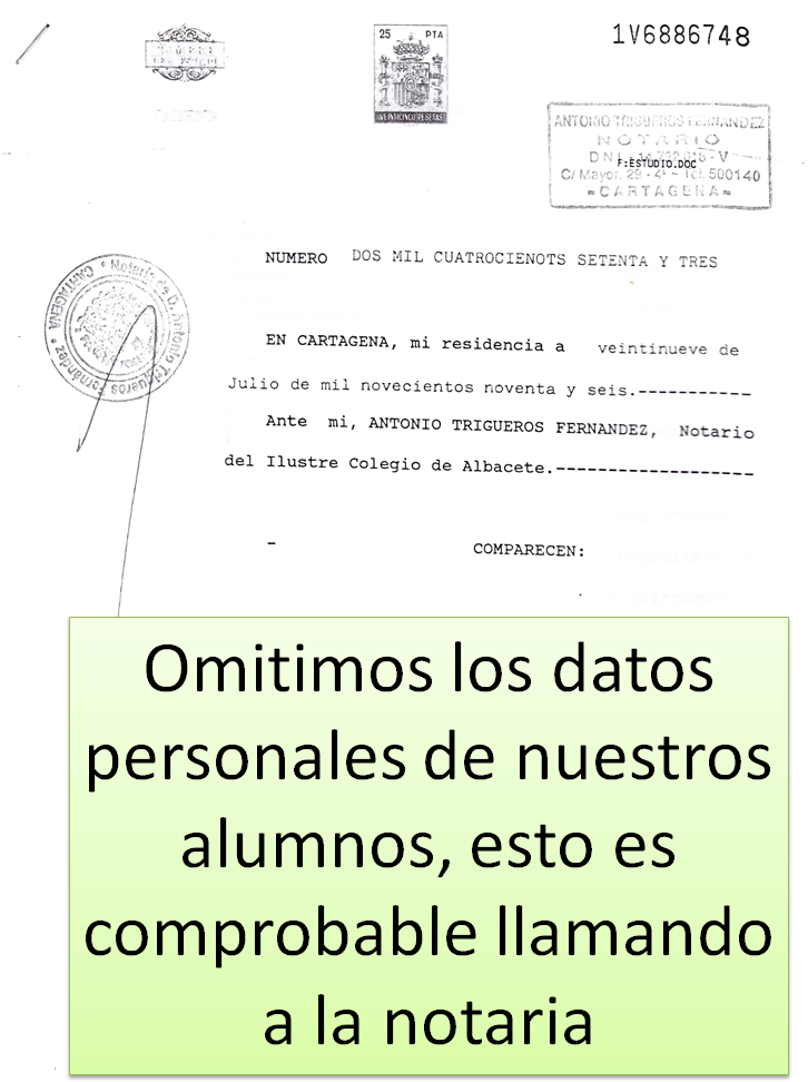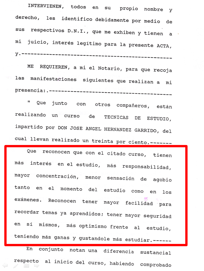 Te mostramos los resultados de nuestro primer curso de tecnicas de estudio realizado con éxito en 1996 y sus resultados publicados mediante un ACTA NOTARIAL